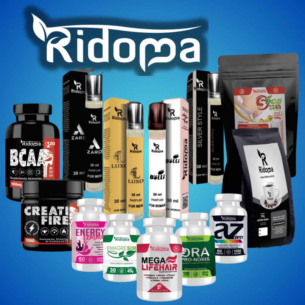Conheça os produtos da Marca Ridoma; produtos Naturais como: Neutraceuticos, Linha de Força(pra quem faz exercícios físicos), Chá Seca Barriga, Café Arábica e Perfumes Importados, Inspirados nos perfumes das Maiores Grifes do Mundo!